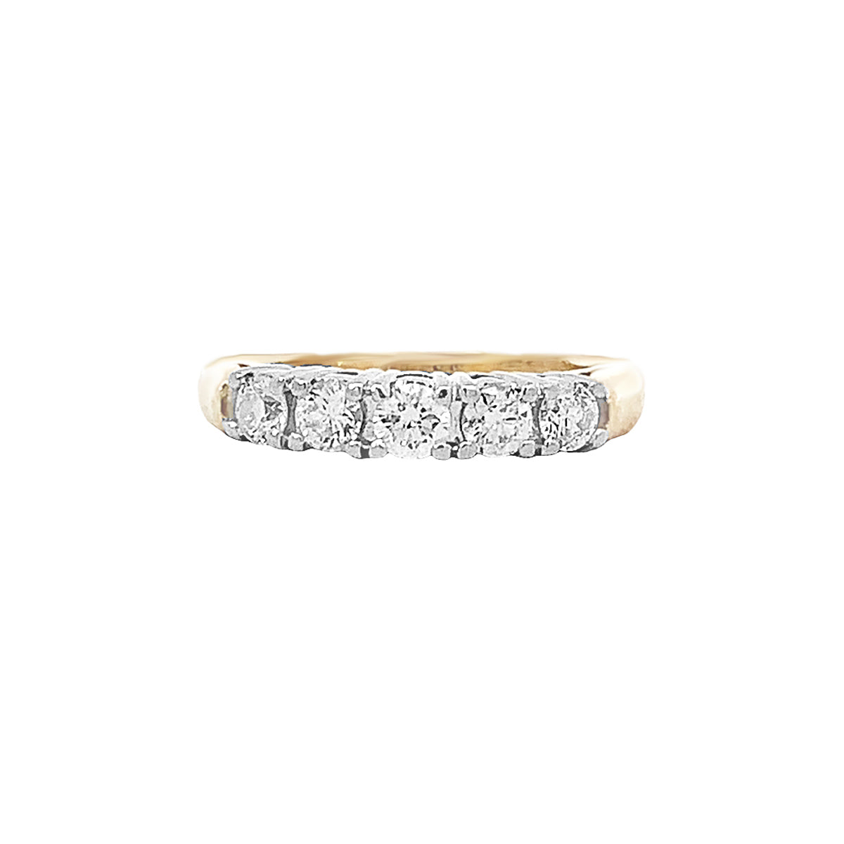 14kt yellow gold 1/2ct Vintage 5-diamond prong-set wedding band, size 4.75