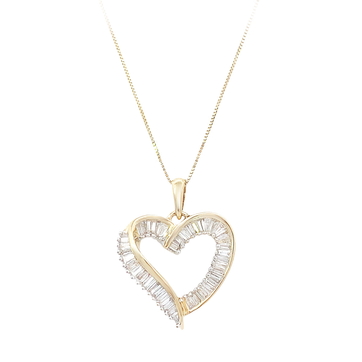 14kt yellow gold 19" Vintage 1.45ct baguette diamond heart pendant