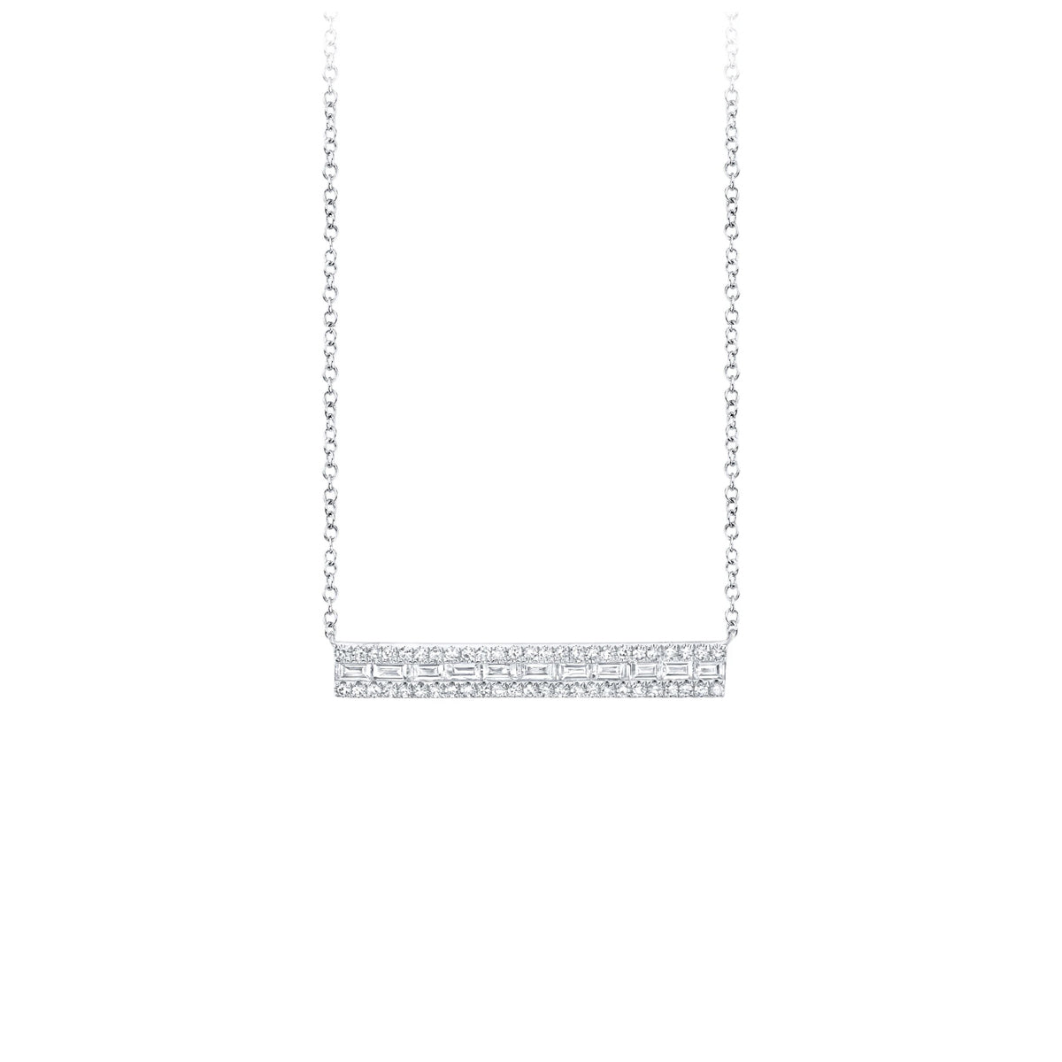 14k white gold 18" 3-row bar necklace with 0.40ct baguette & round diamonds by Shy Creation