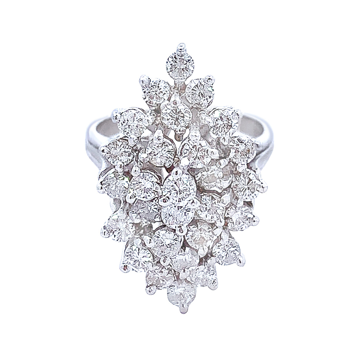 14k white gold Vintage 1.68ct diamond navette-shaped cluster ring, size 7