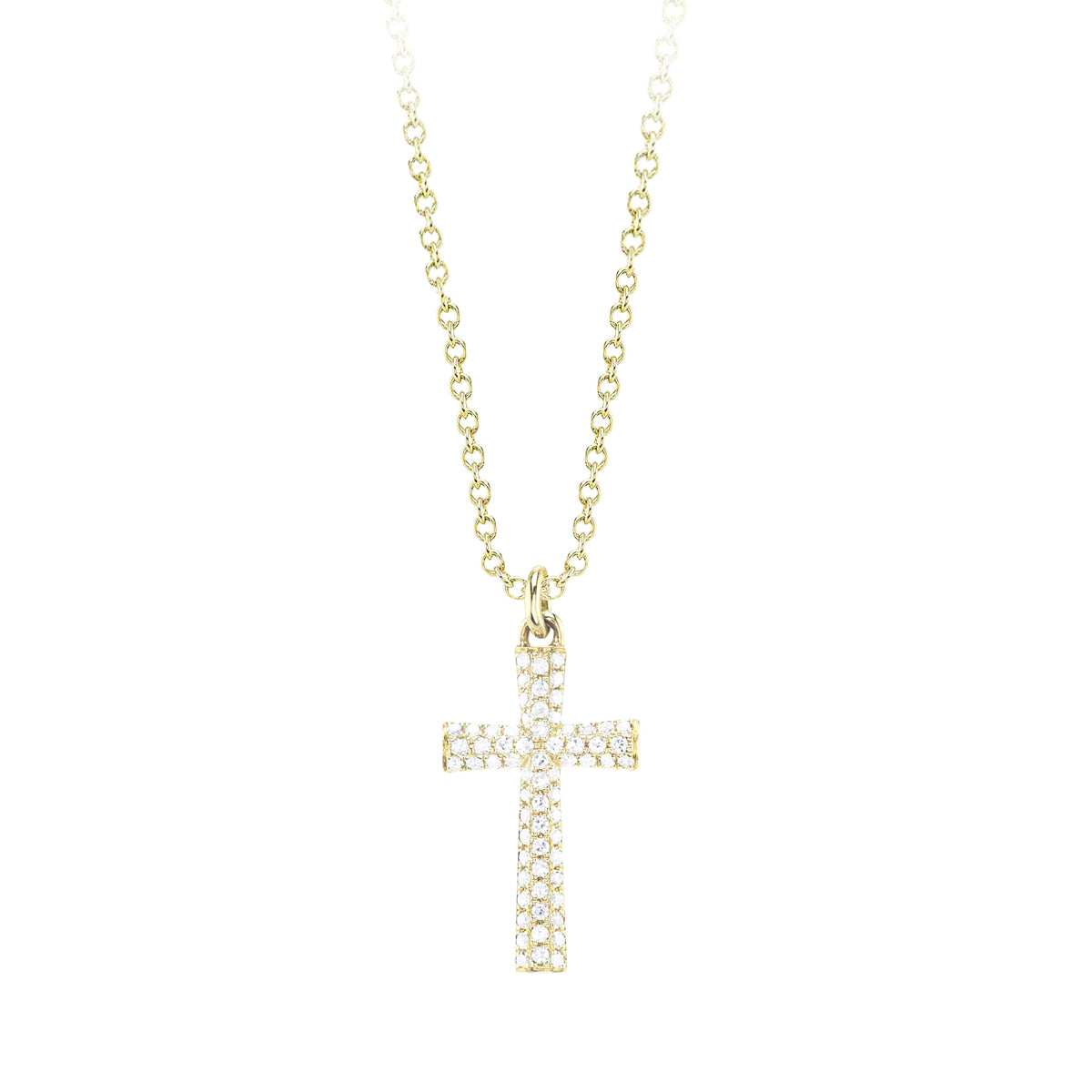 14k yellow gold 18" 0.14ct pave diamond cross pendant with flared ends