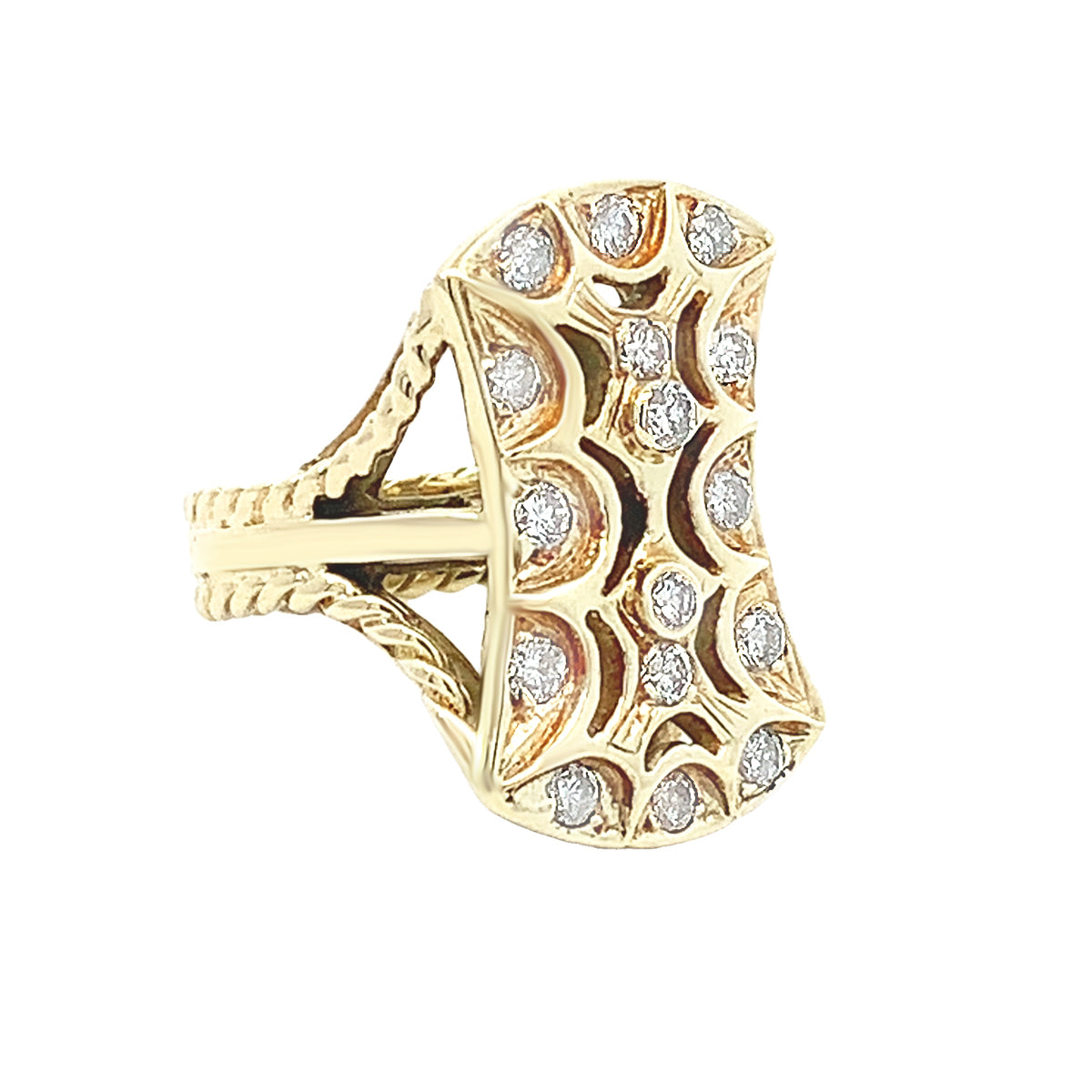 14k yellow gold oblong Vintage ring with 0.60ct scattered diamonds, size 5.5