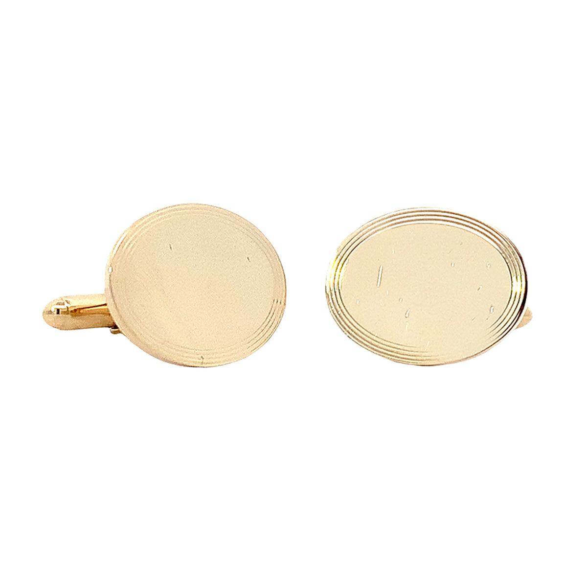 14k yellow gold heavy Vintage oval cuff links with striped edge (engraving extra)