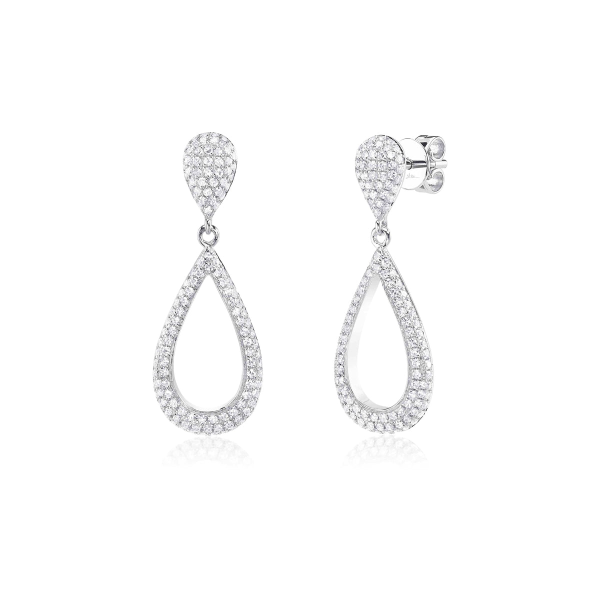 14k white gold 0.69ct pave diamond open teardrop earrings