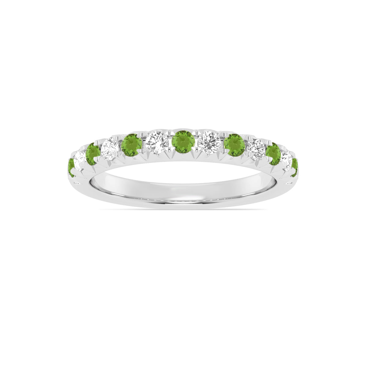 14kt white gold 2.2mm peridot & 0.25ct diamond fishtail band, size 6. A stackable band for the lime green color lover, or to commemorate an August birthday.