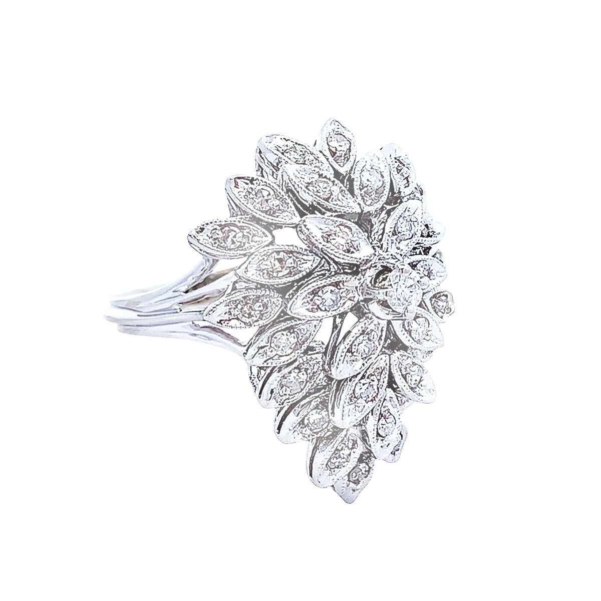 14k white gold large Vintage teardrop 0.57ct diamond cluster cocktail ring, size 7.5