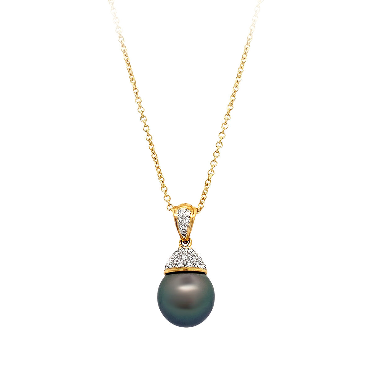 18kt white gold 16" 11.7mm Tahitian pearl pendant with 0.25ct pave diamond bail & cap