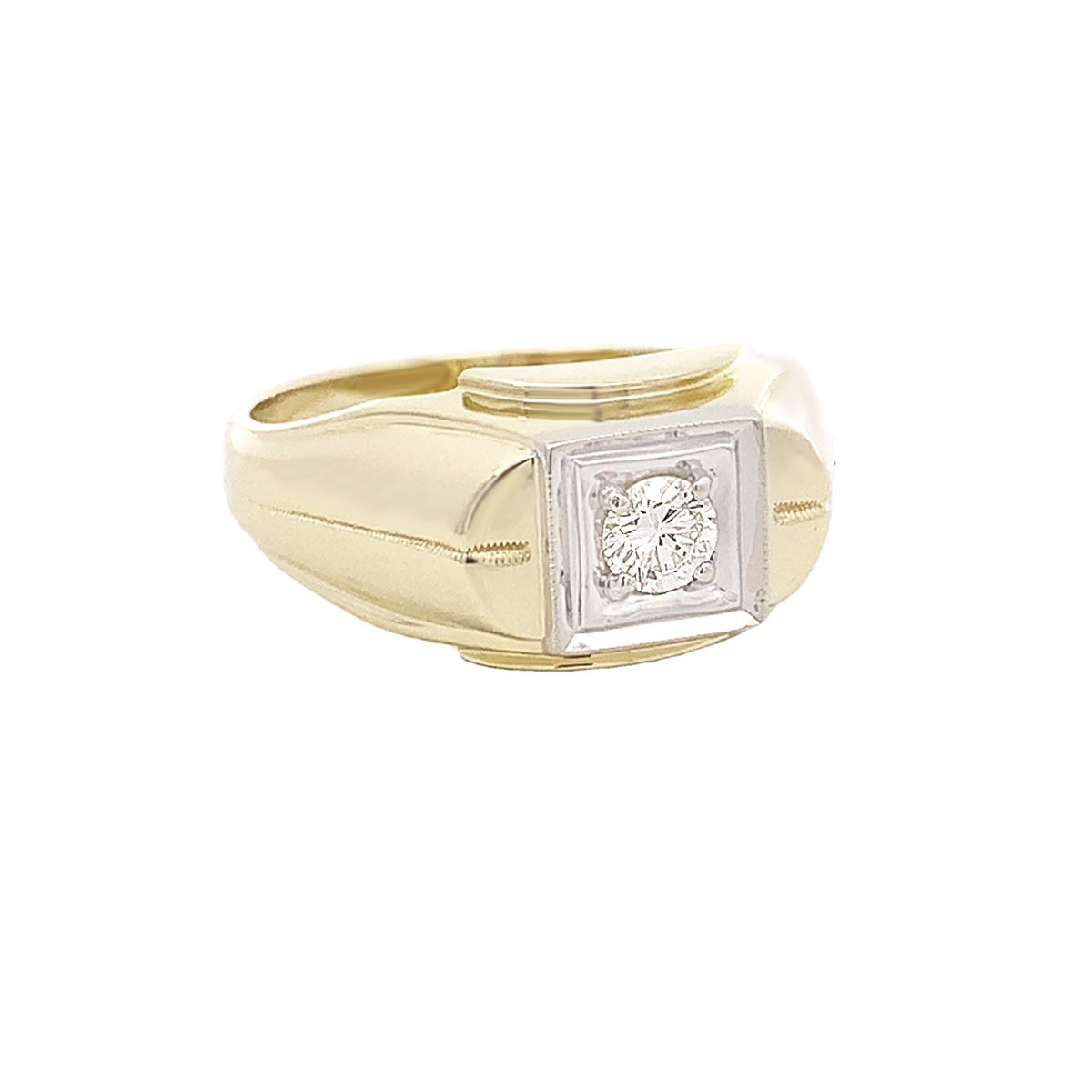 14k yellow gold Vintage gents 1/3ct diamond solitaire ring, size 11.5