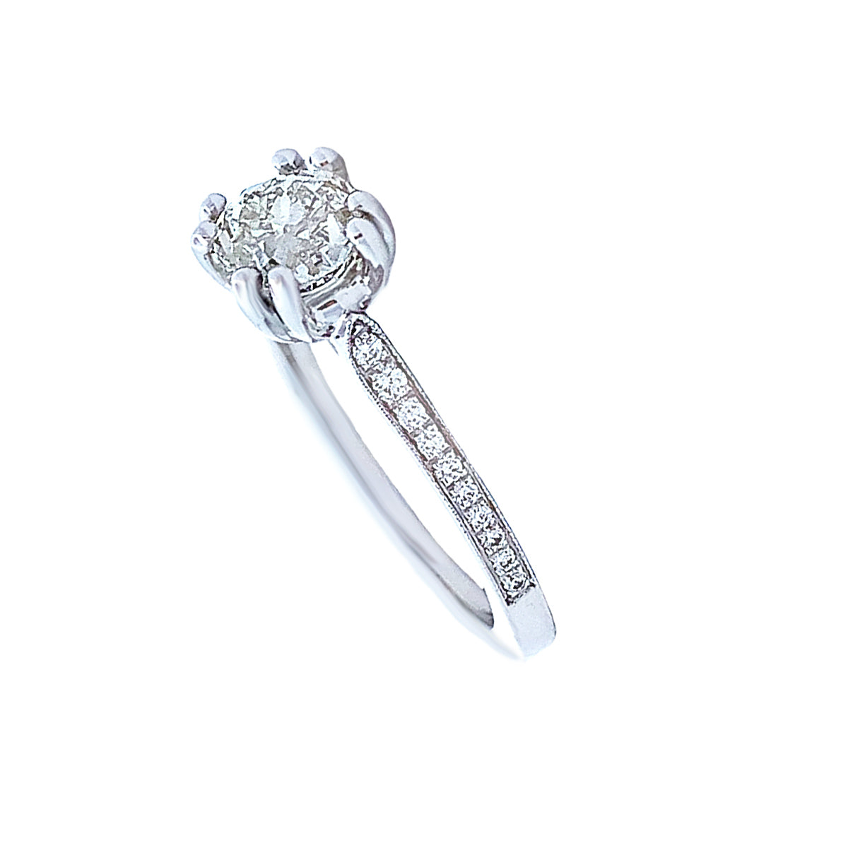14k white gold Vintage milgrain engagement ring with 1.05ct Old Mine center diamond & 0.12ct diamond shank, size 5