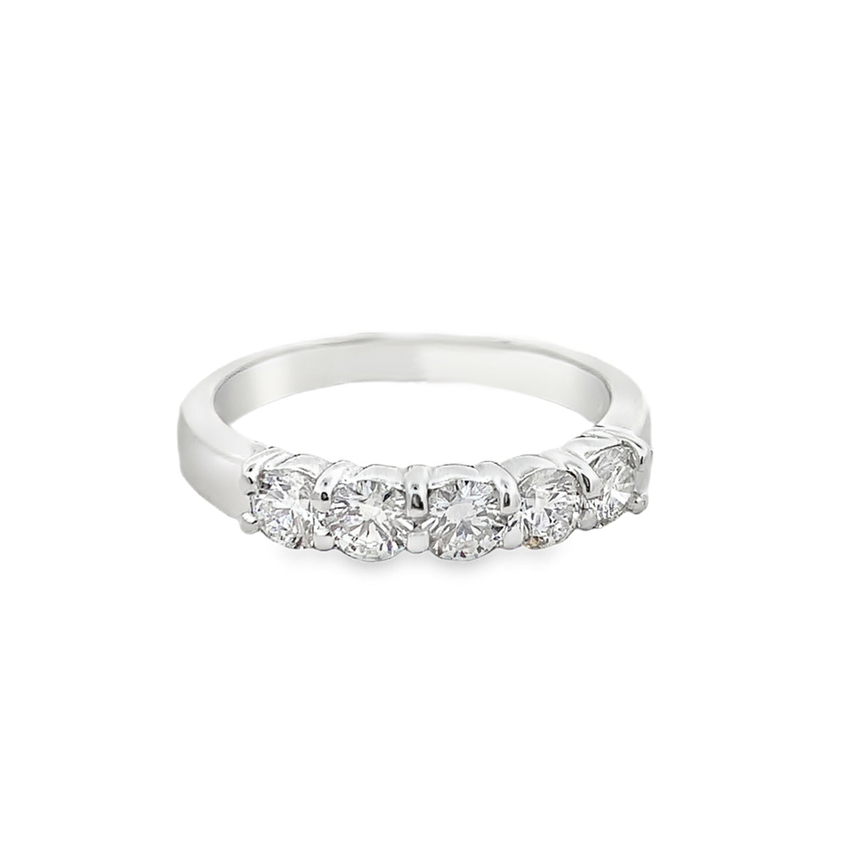 Platinum 5-stone 0.75ct Shared-Prong Diamond Band, G/VS, Size 6