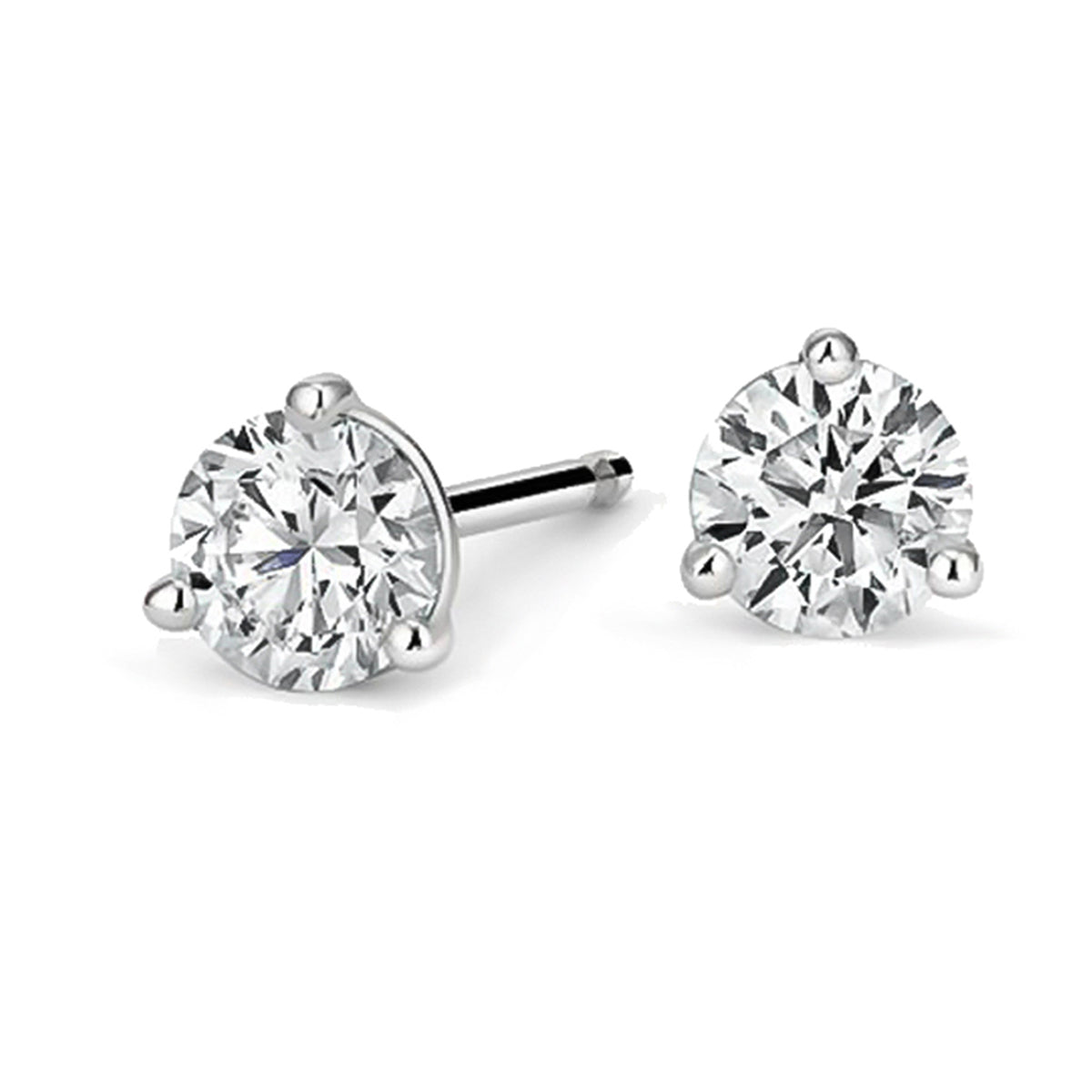 14k white gold 1.49ct Natural diamond stud earrings, 3-prong "Martini glass" settings with friction posts, D-E/SI2