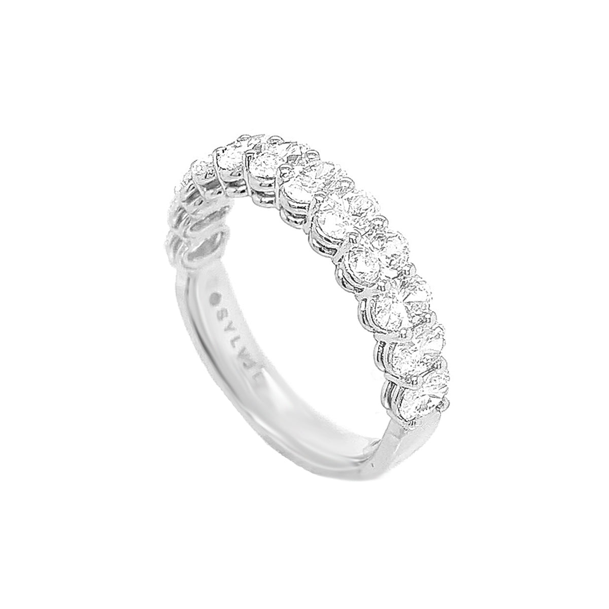 14kt white gold 1.50ct oval Shared-Prong natural diamond wedding band, set half around, Size 6.5