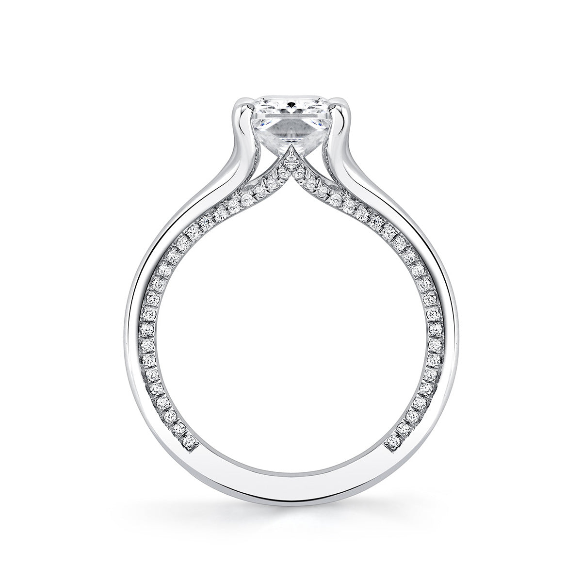 14k white gold split shank ring mounting with 0.24ct diamond side shank and 4-prong white 2ct oval head, size 6.5 (center stone not included)