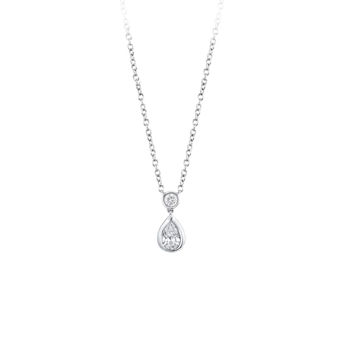 14k white gold 18" bezel-set 0.29ct pear and round diamond drop necklace