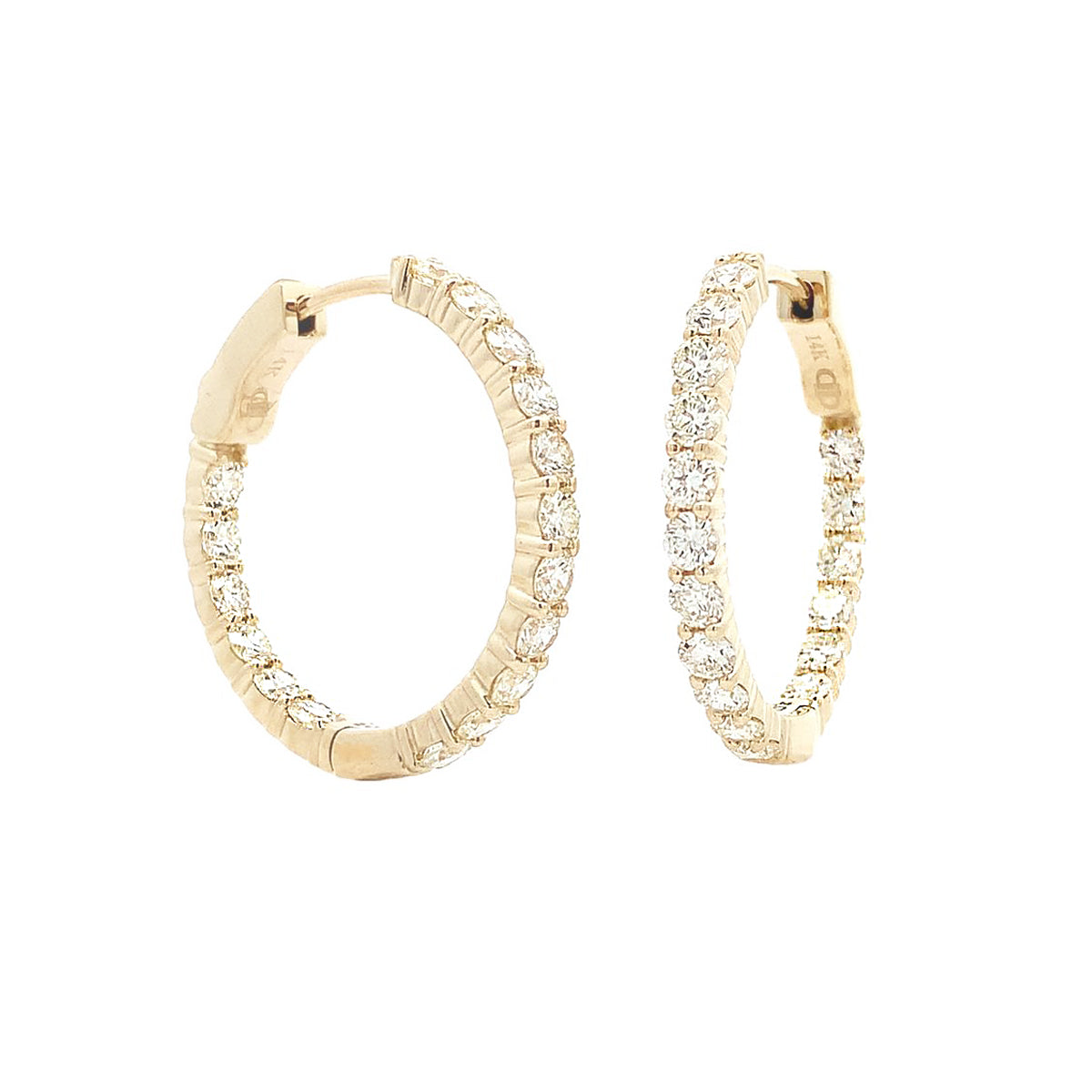 14k yellow gold 2ct diamond inside-out hinged hoop earrings