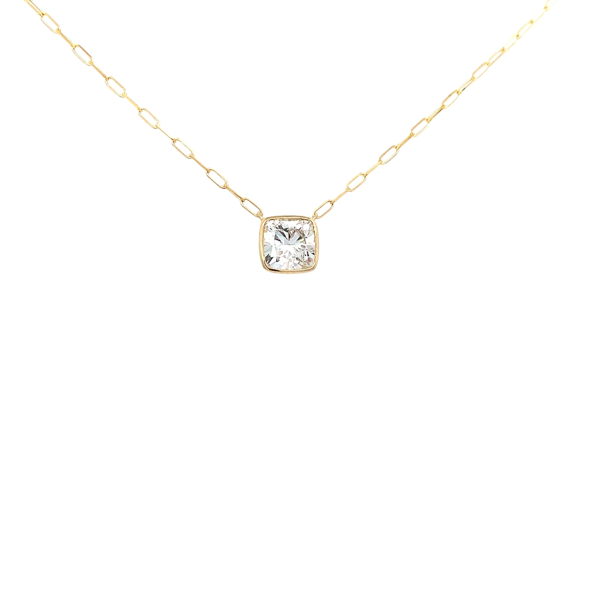 14k yellow gold 18" 2.13ct cushion Lab-Grown bezel-set diamond solitaire necklace E/VS1 (IGI certified)