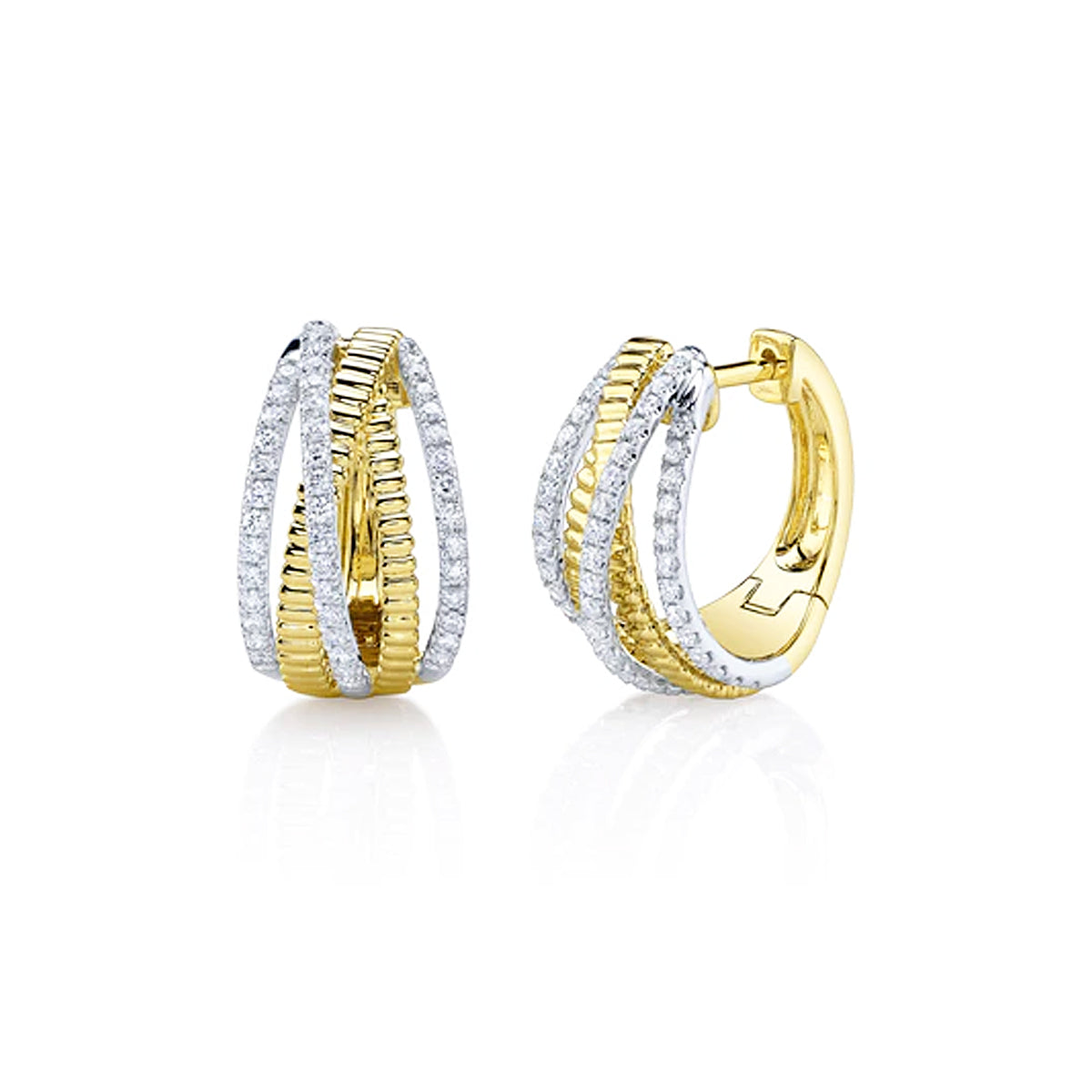14k yellow & white gold 0.48ct multi-strand diamond hoop earrings