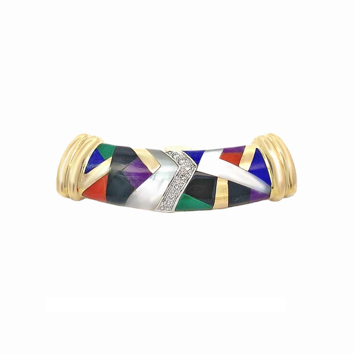 14k yellow gold Vintage Asch-Grossbardt removable multi-gem & 0.04ct diamond curved enhancer pendant on 17" 6mm gold omega necklace