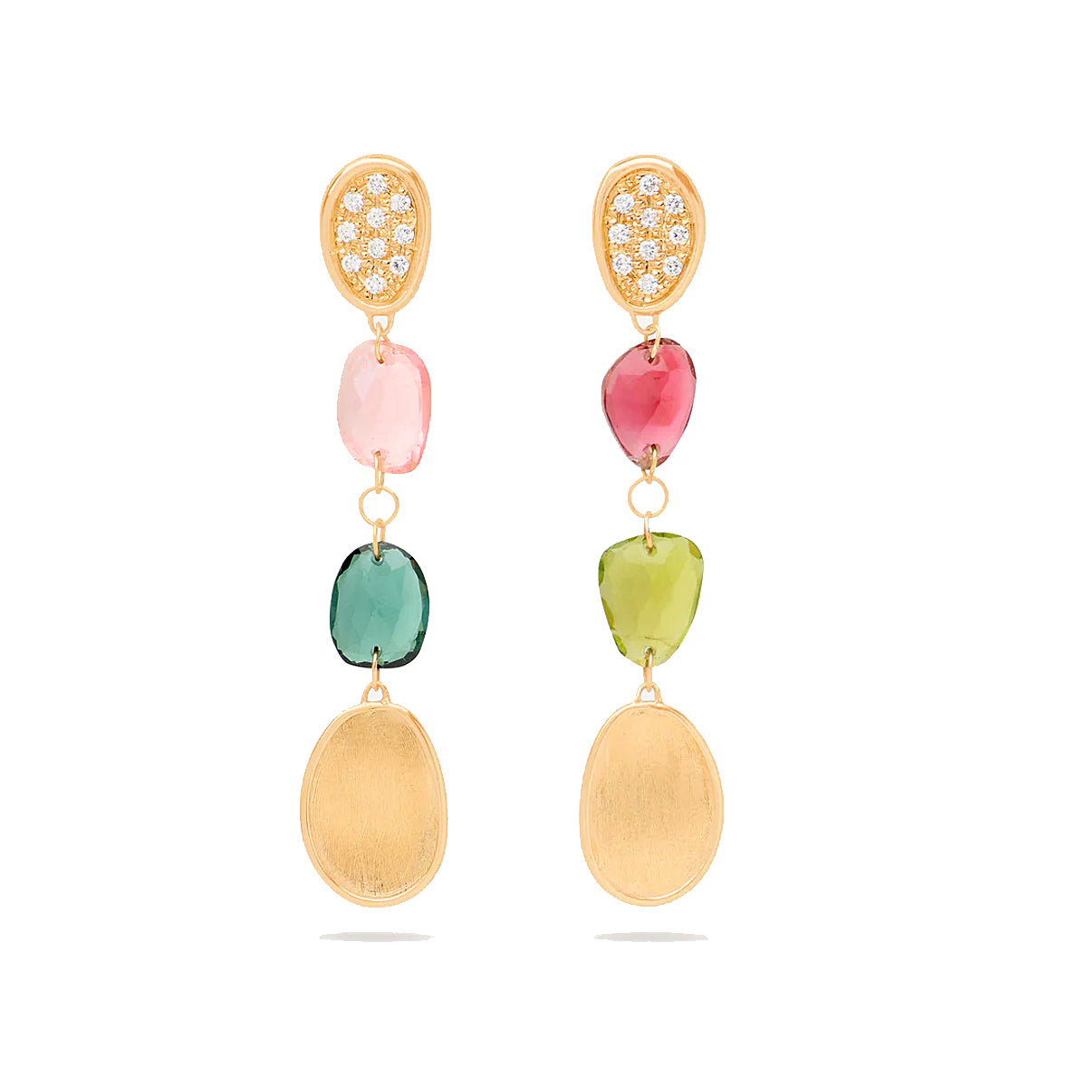 18k yellow gold 4-section multiti color tourmaline "Lunaria" drop earrings by Marco Bicego with 0.16ct pave diamond top