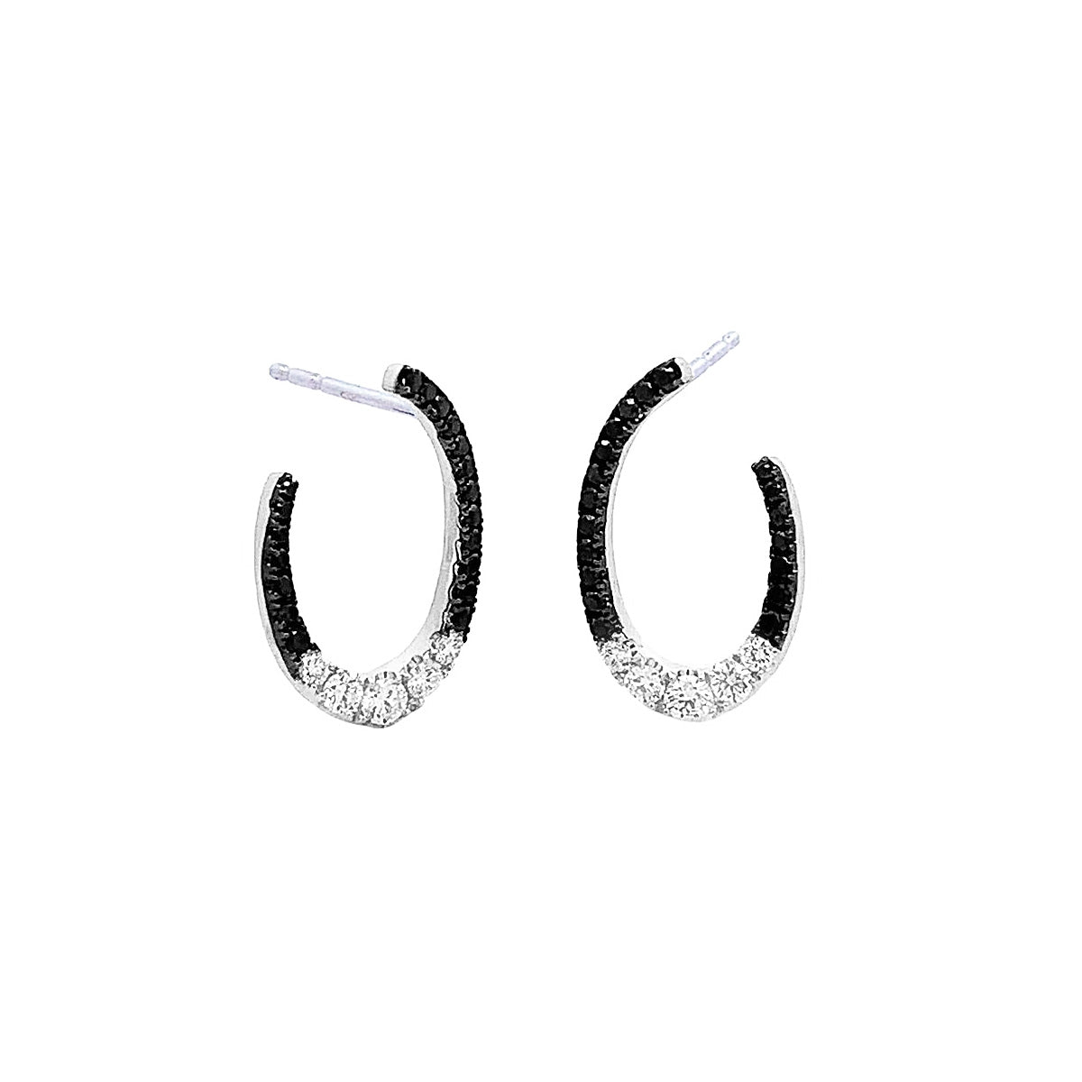 14k white gold open oval earrings with 0.79ct pave black & white diamonds by Frederic Sage