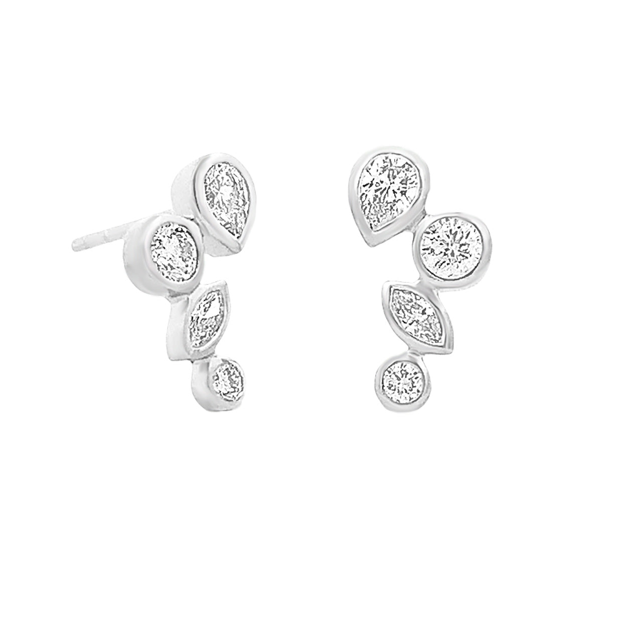 14k white gold small "Bubble" stud earrings by Frederic Sage 0.61ct round, pear & marquise diamonds