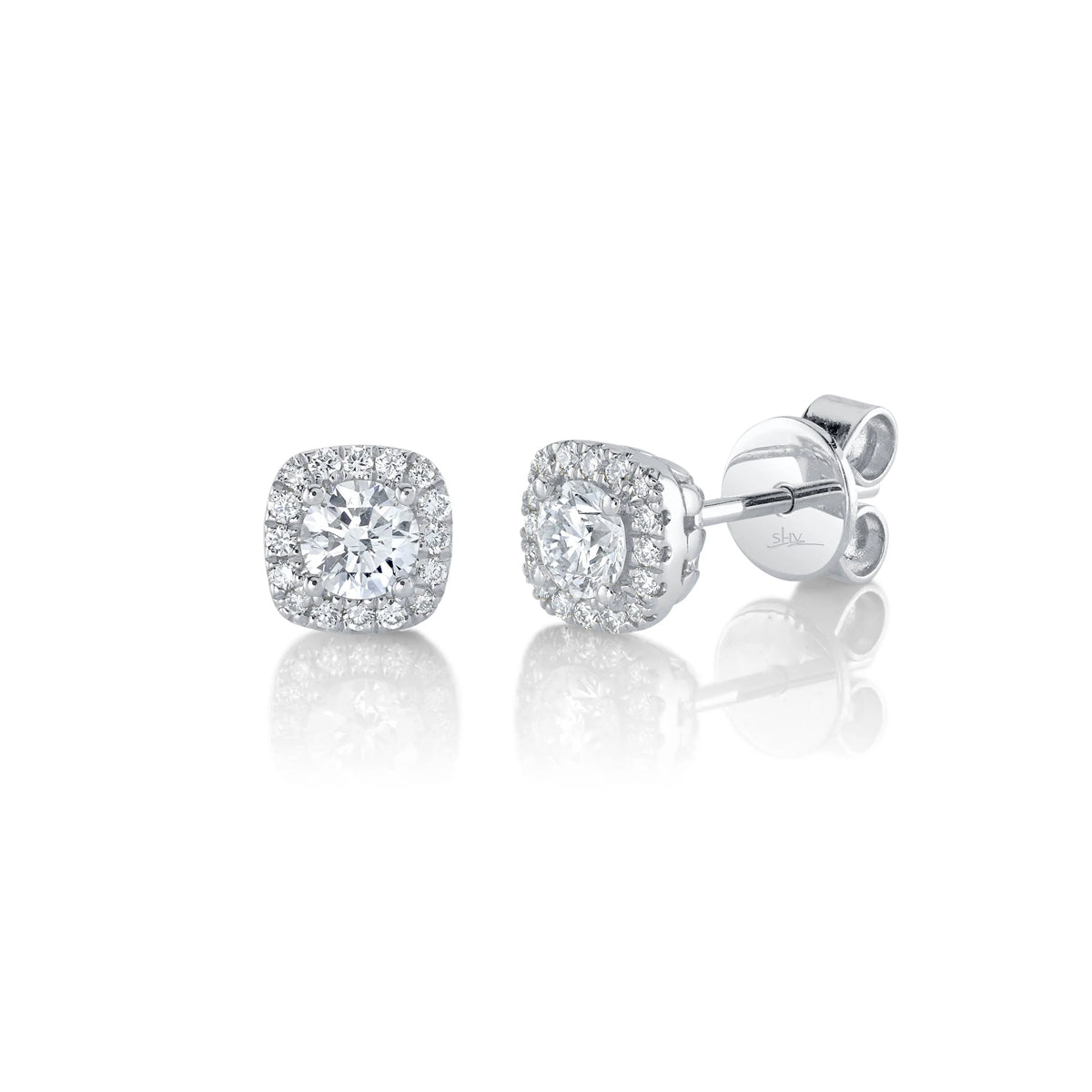 14k white gold small 1/4" 0.61ct diamond cushion halo stud earrings by Shy Creation