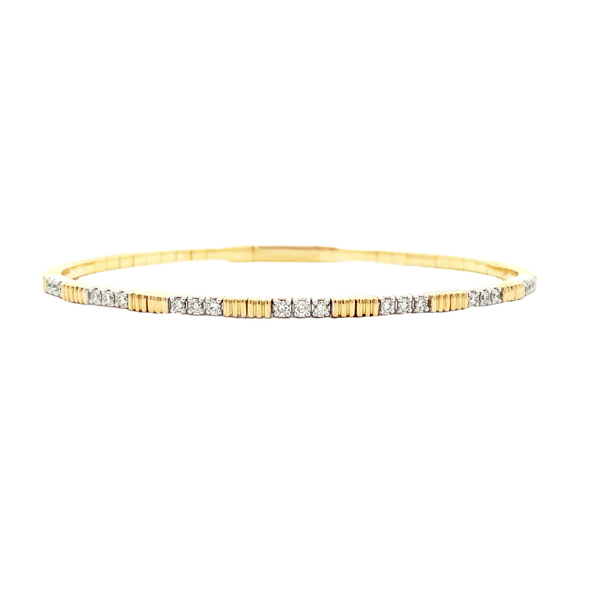 14k yellow gold flex bracelet with 3/8ct diamonds in 3-stone clusters (titanium core for flexibility)