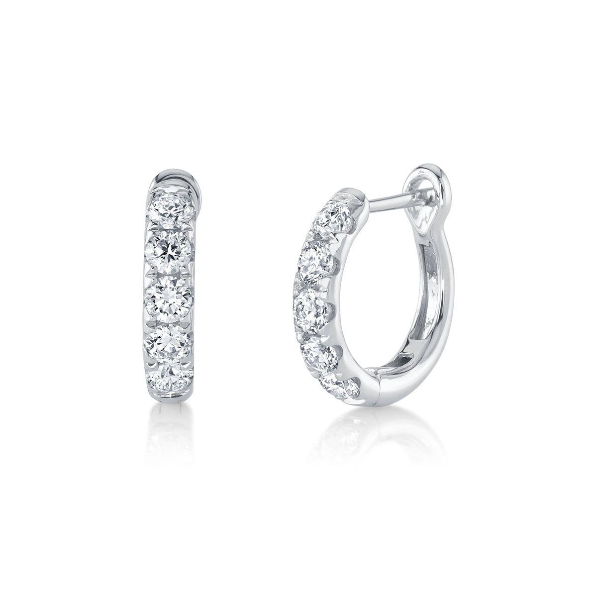 14k white gold small 1/2" prong-set 0.81ct diamond huggie hoops by Shy Creation