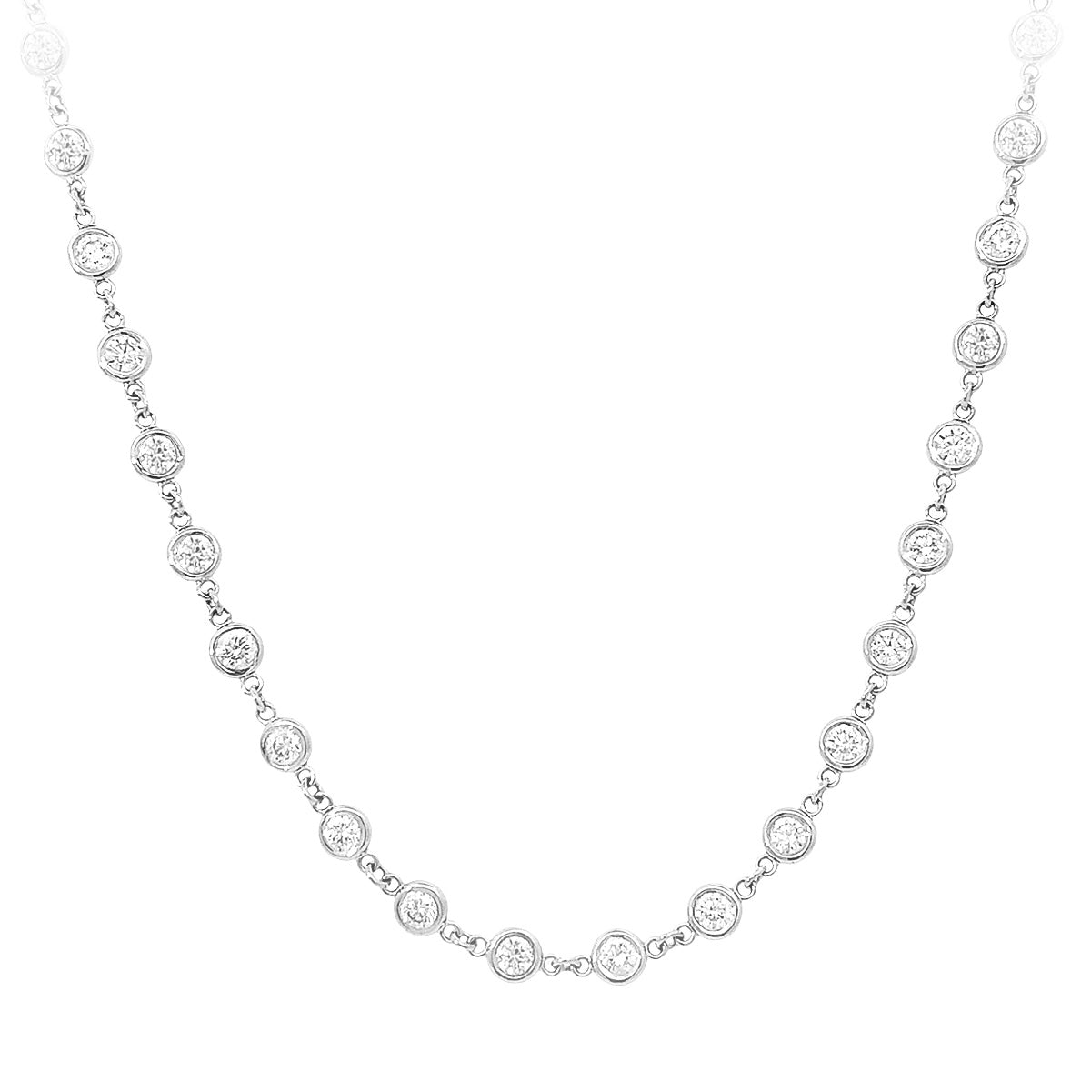 14kt white gold 18" necklace of 4.15ct bezel-set diamonds all around