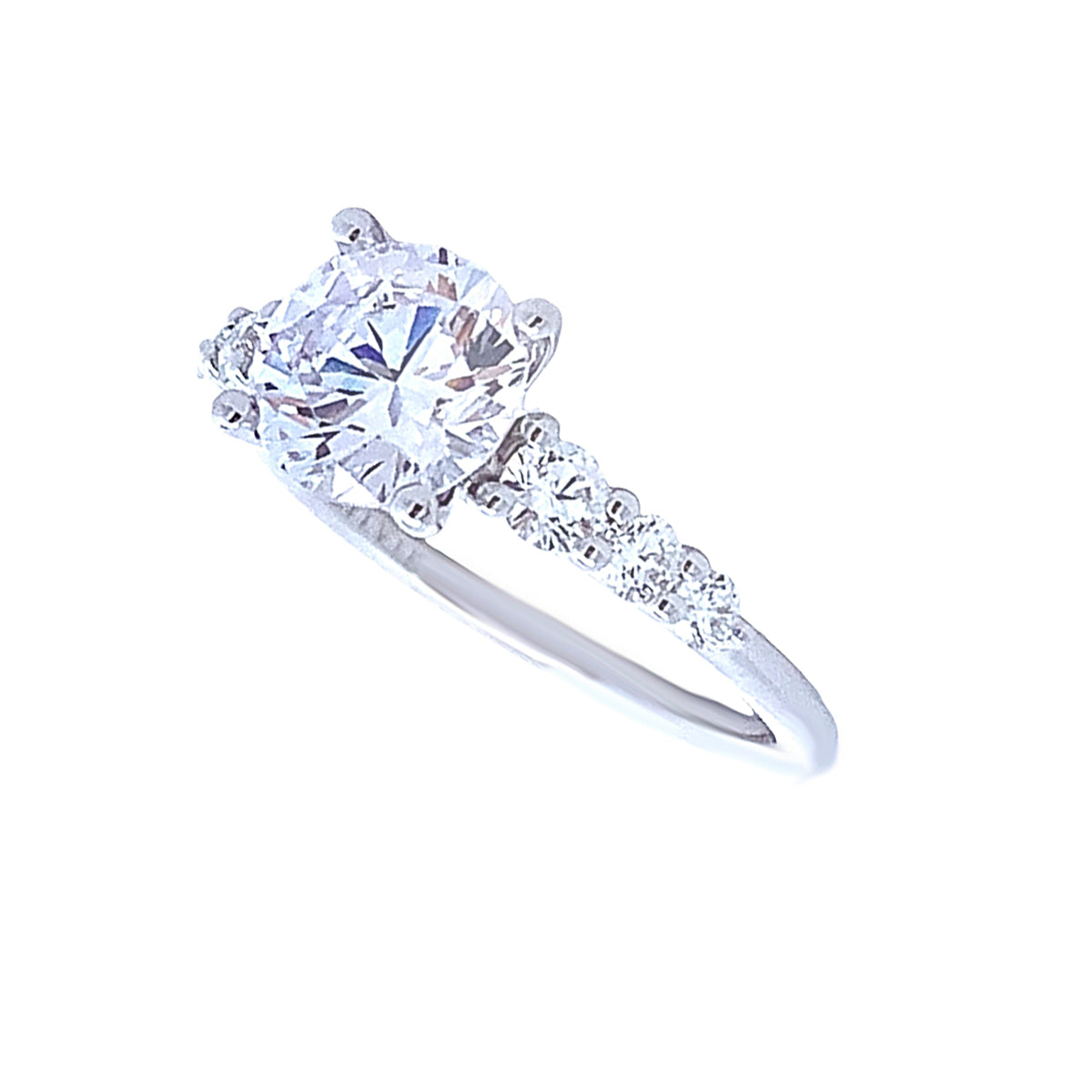 14k white gold engagement mounting with 0.42ct graduated diamond shank & 1.5ct round setting, size 6.5