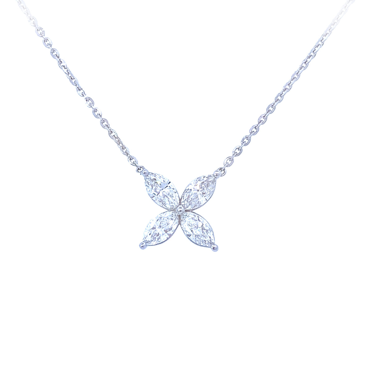14k white gold 18" Lab-Grown 1.08ct diamond 4-point flower necklace