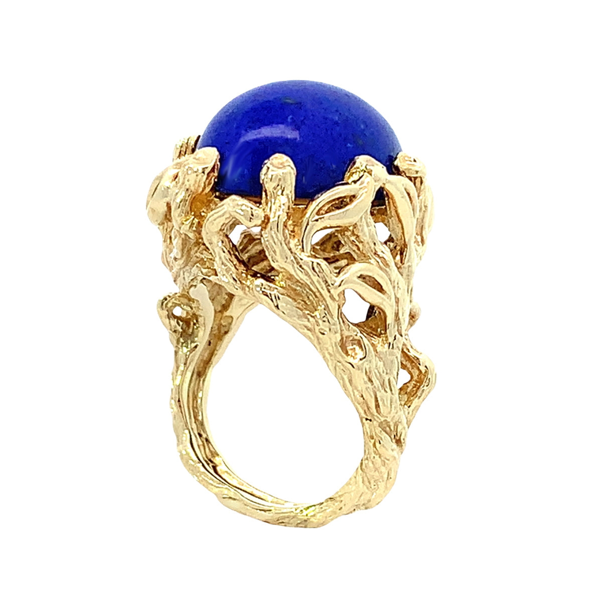 Stunning 18kt yellow gold heavy textured Vintage oval lapis "statement" ring, size 7