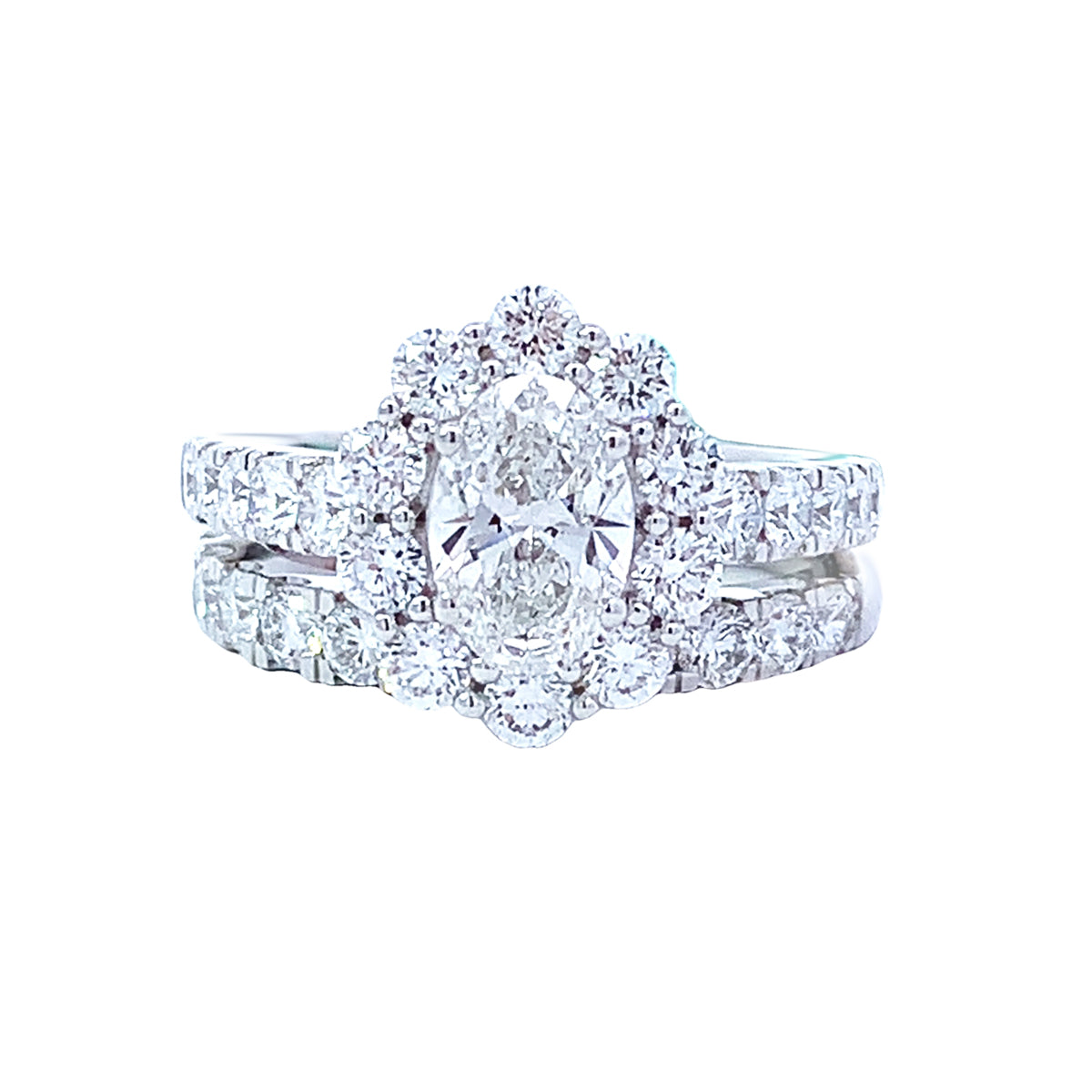 Exquisite set: 14k white gold Lab-Grown diamond engagement/wedding ring set with 1.02ct oval center & 2ct smaller diamonds