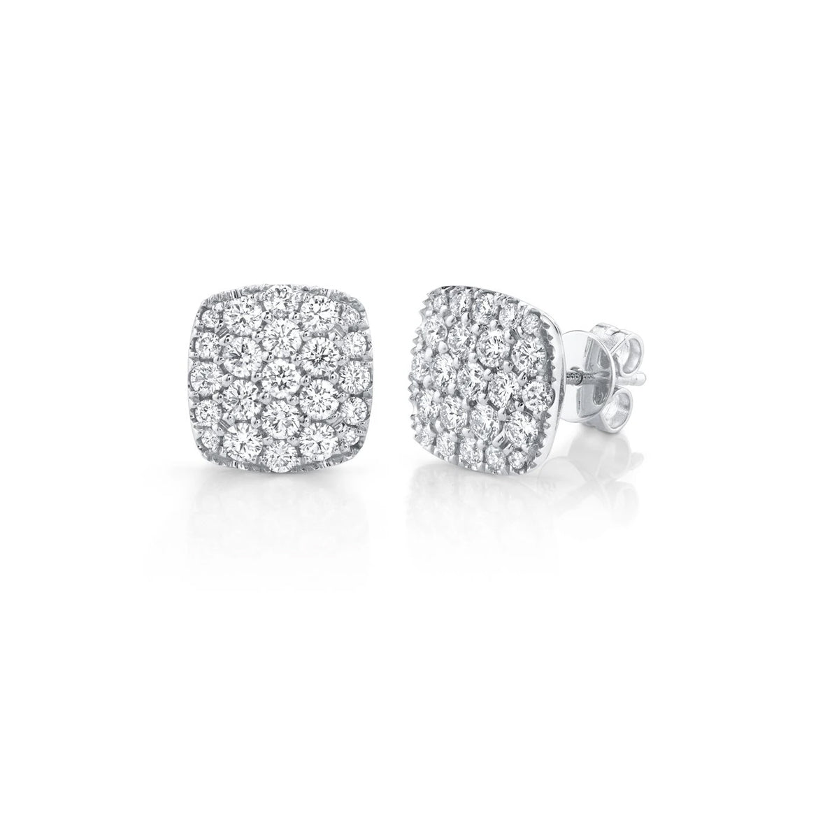 14k white gold 1/2" 1.10ct pave diamond cushion stud earrings by Shy Creation