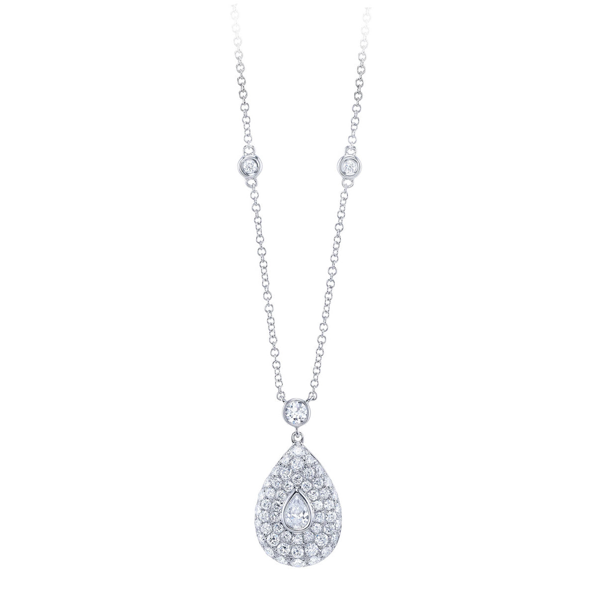 14k white gold 18" 0.99ct pave diamond teardrop bezel necklace with diamond stations