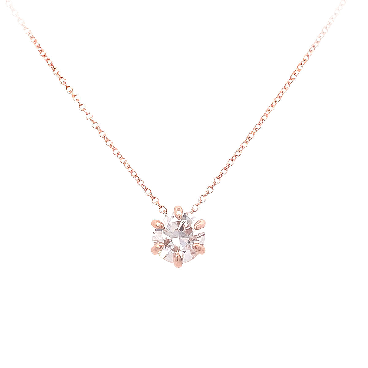 14k 18" pink gold 1.19ct prong-set diamond solitaire pendant on cable chain