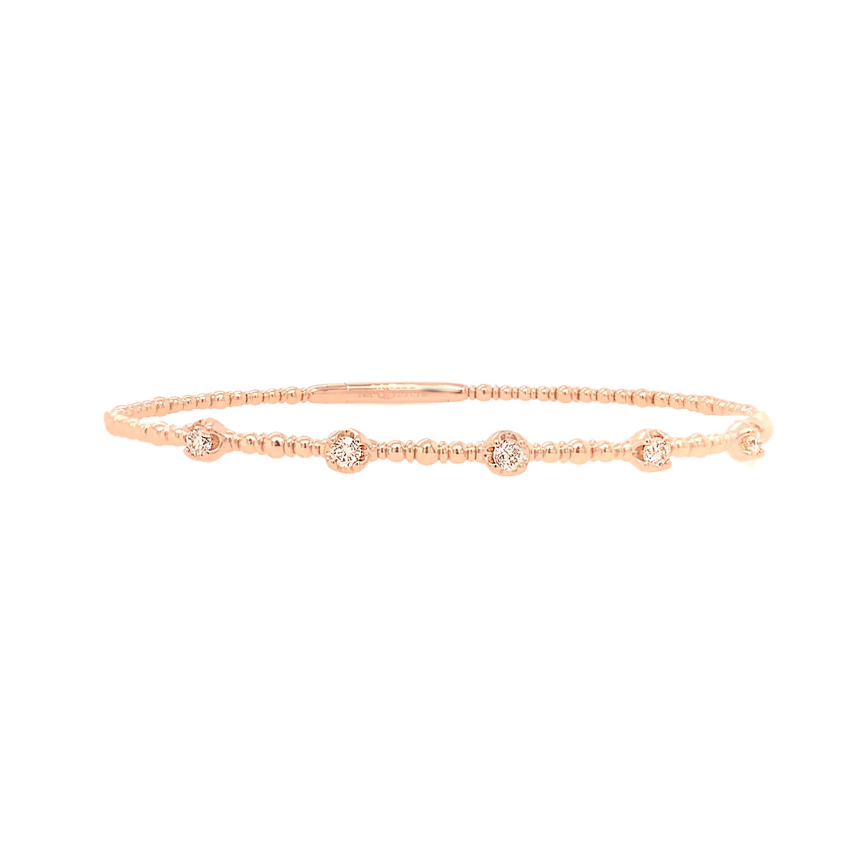 14kt rose gold beaded flex bangle with 5 studded diamonds (1/3ct) and Titanium core