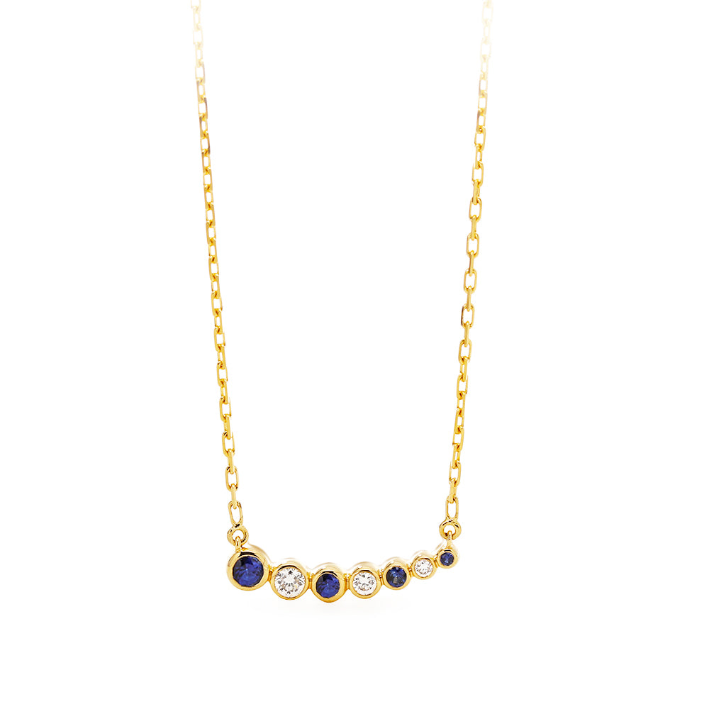18k yellow gold 18" sapphire & 0.13ct diamond "Bubbly" curved bezel-set bar necklace by Mark Henry