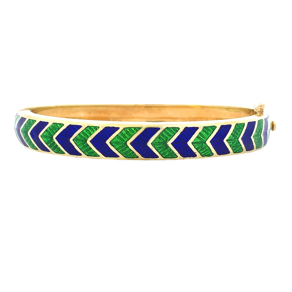 18k yellow gold Vintage Tiffany vivid blue & green "Chevron" pattern enamel bangle (enamel goes all around)
