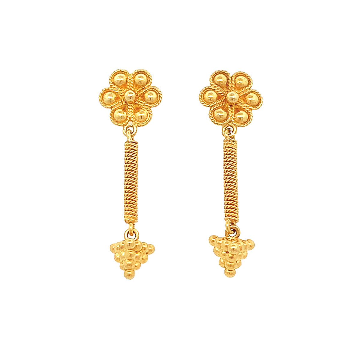 22k yellow gold Vintage "Flower & Arrow" drop earrings