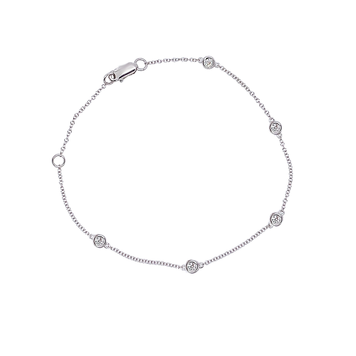 14k white gold 0.13CT 5-diamonds-by-the-yard bracelet by Shy Creation