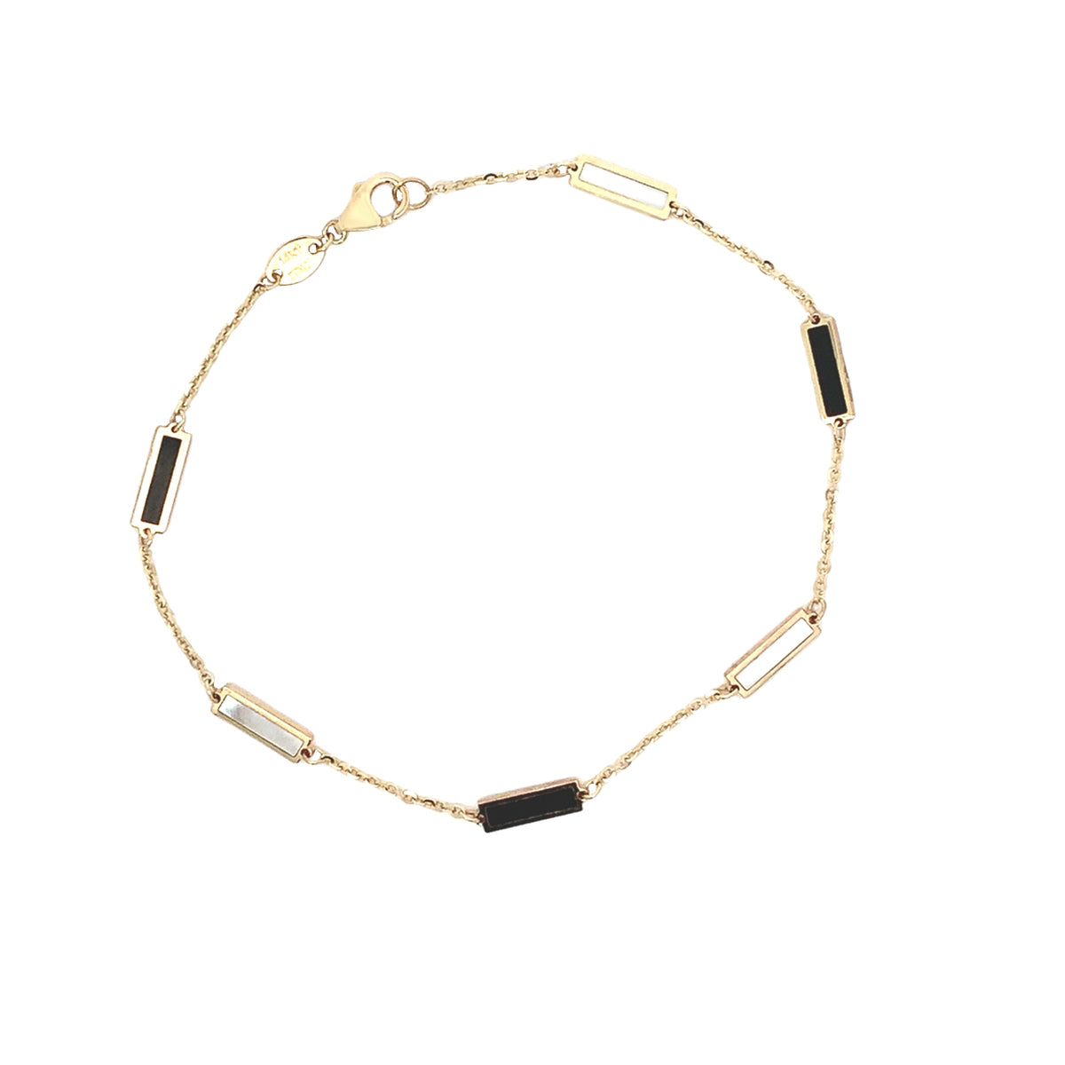 14k yellow gold bracelet with narrow inlaid onyx and mother-of-pearl bar stations by Frederic Sage