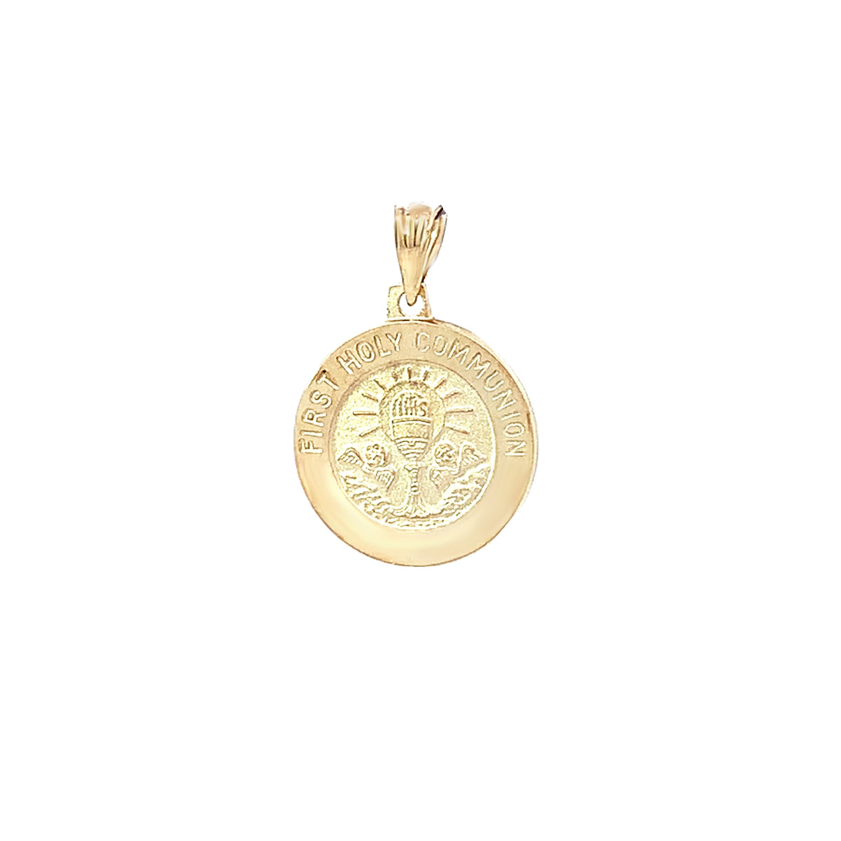 14k yellow gold small round "First Holy Communion" medal (no chain)