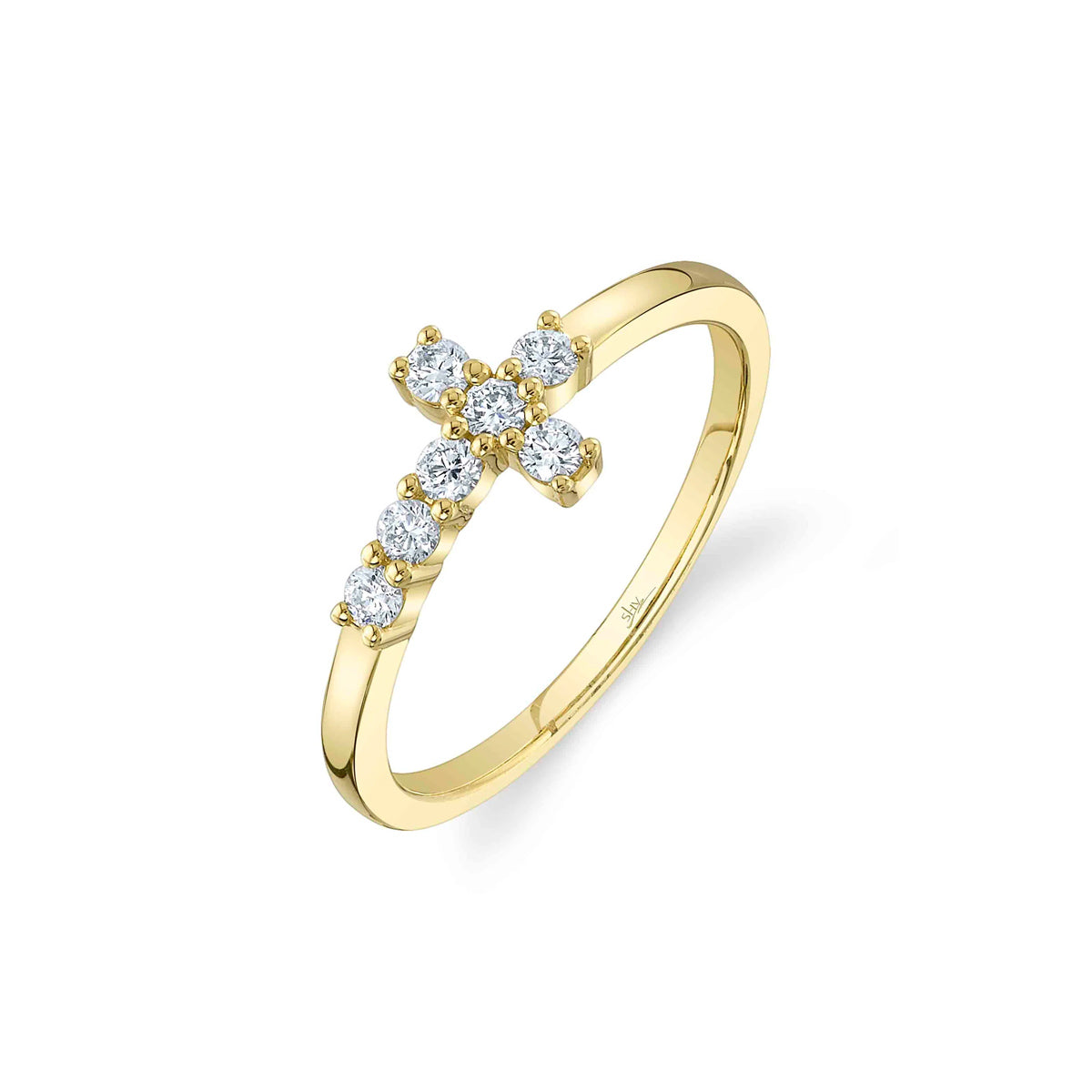 14k yellow gold small 0.25ct diamond cross ring, size 7