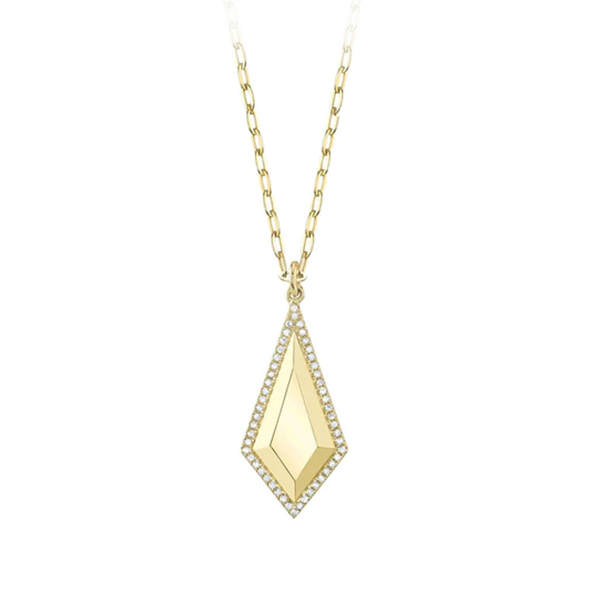 14k yellow gold 18" 0.13ct kite shaped diamond pendant