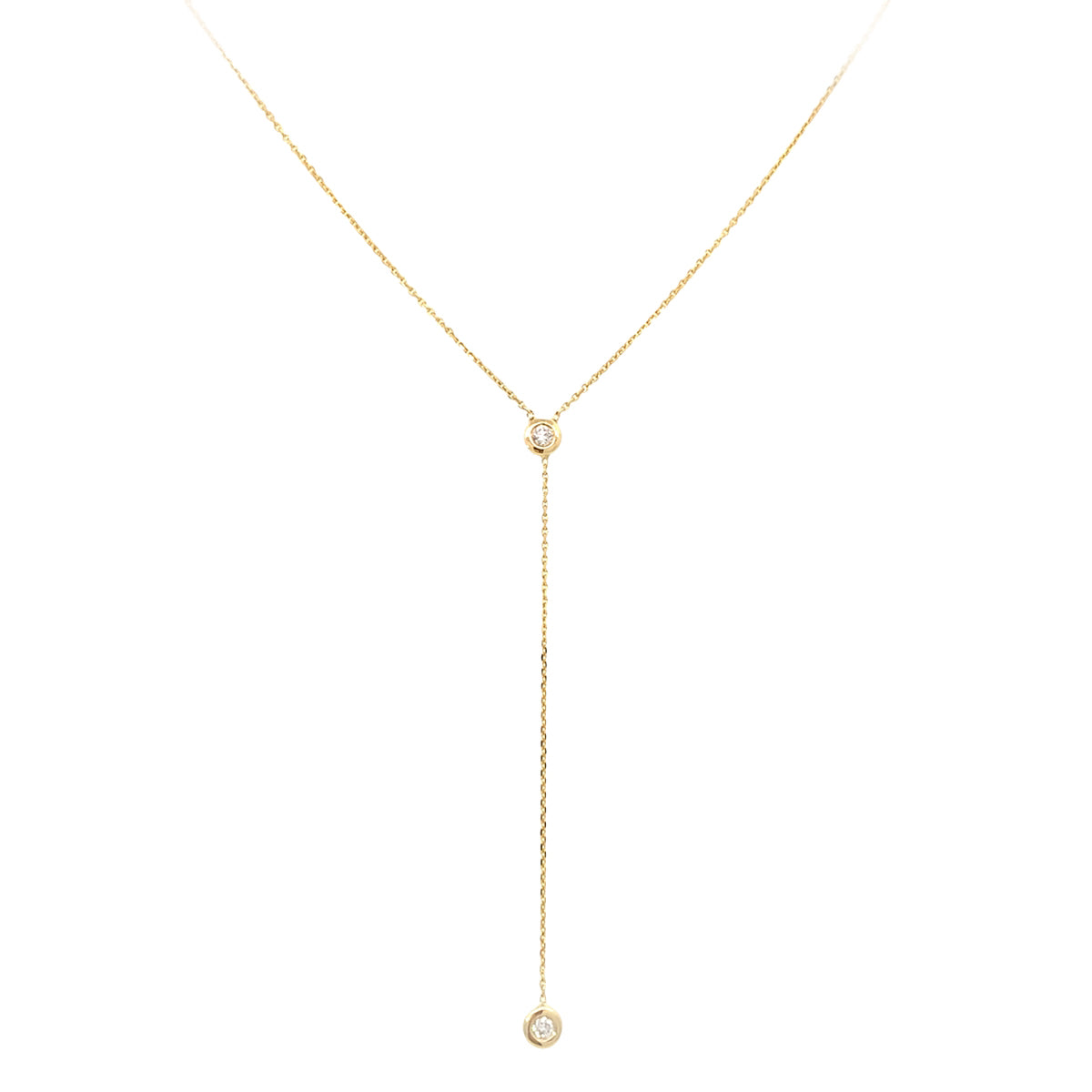14k yellow gold 18" delicate lariat necklace with 2 diamonds (0.07ct)