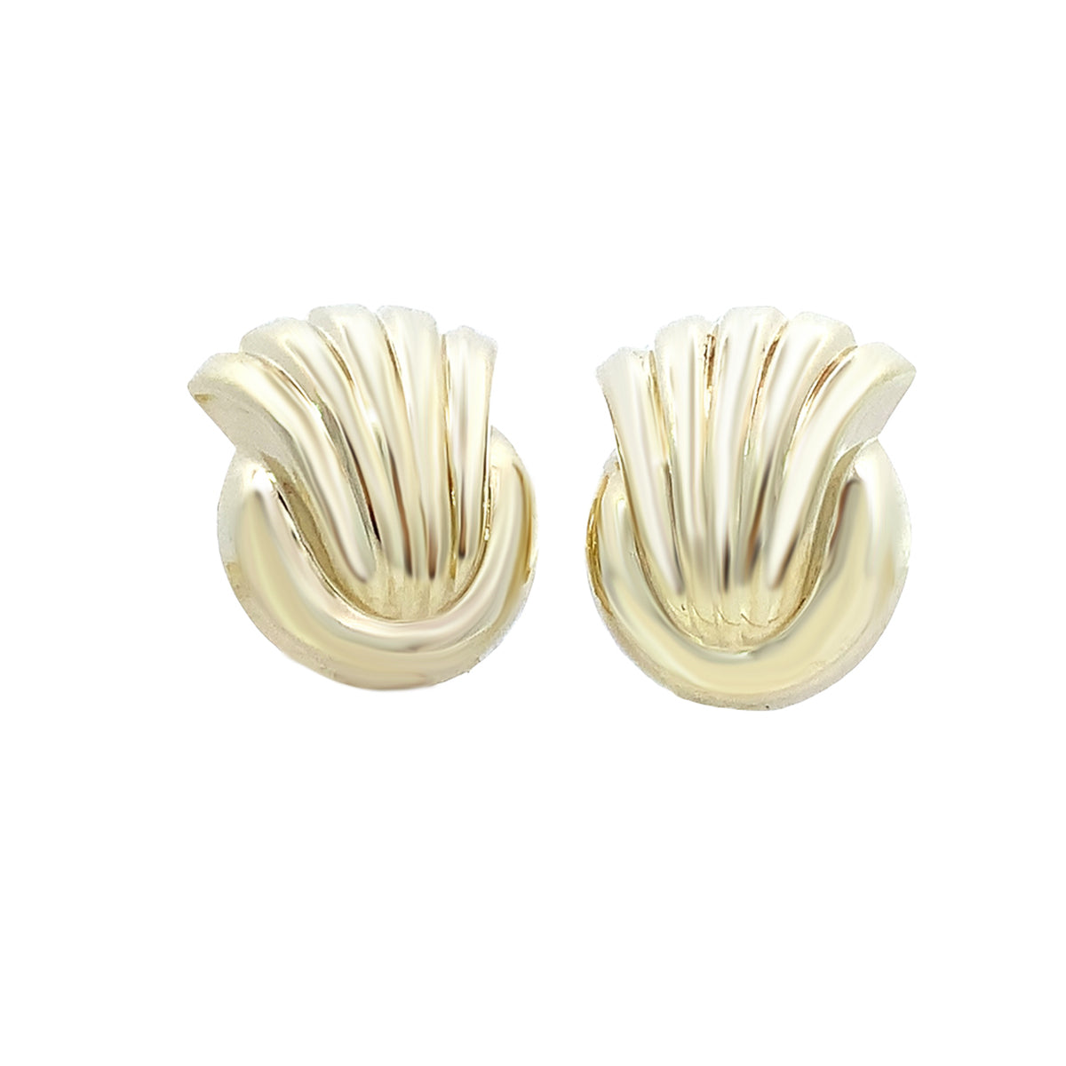 14kt yellow gold domed Vintage ribbed swirl button earrings