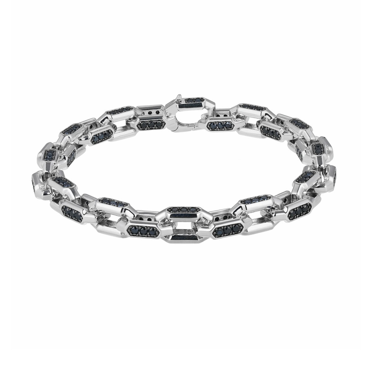 Sterling silver 7.5" faceted link bracelet with pave genuine black spinels by Ethos