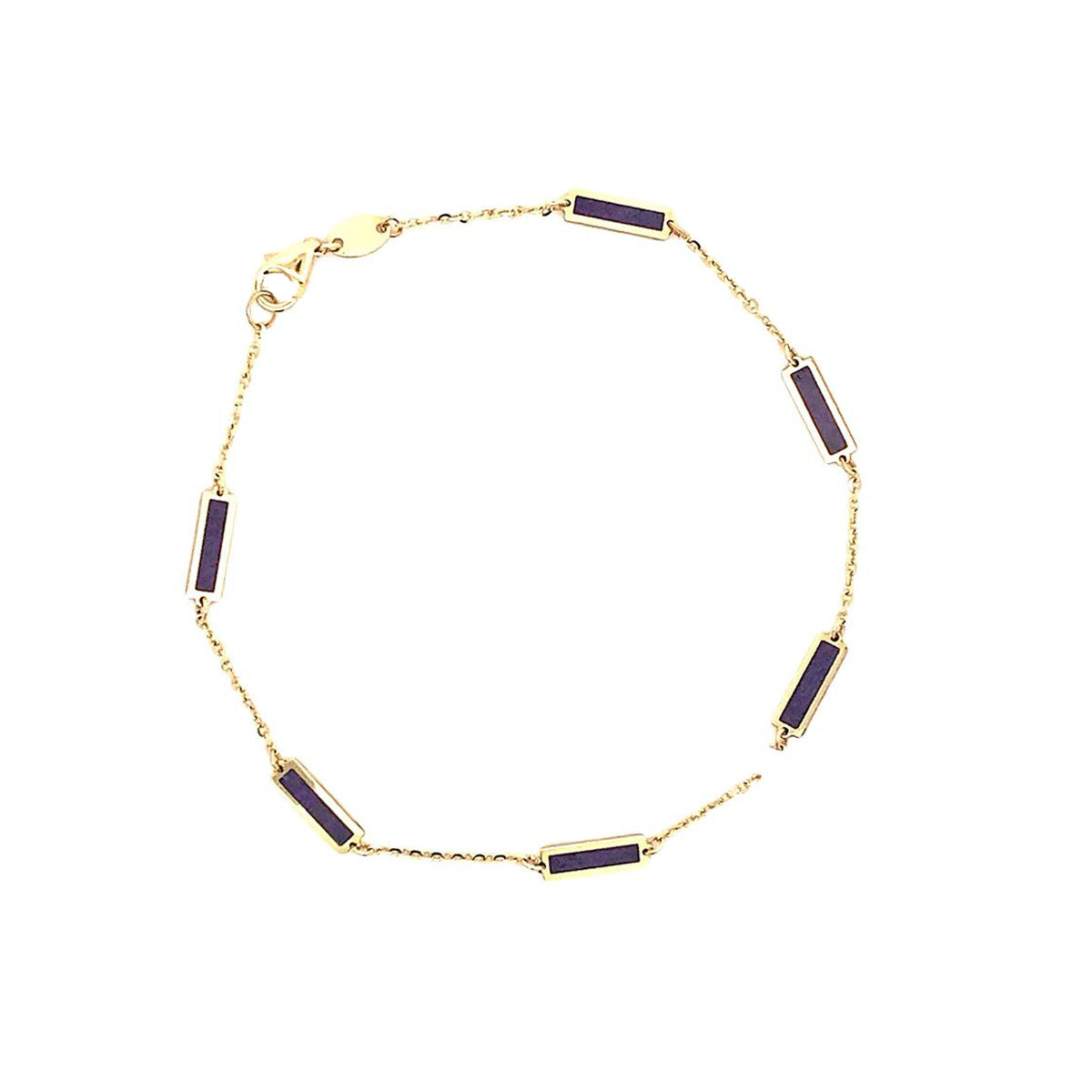 14k yellow gold bracelet with 6 narrow inlaid purple pearl bar stations by Frederic Sage