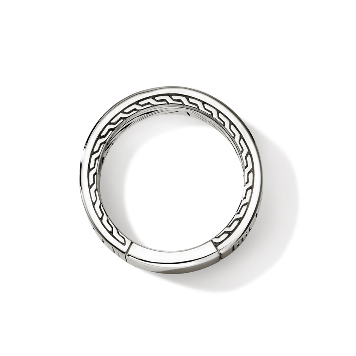 Sterling silver John Hardy mens 9.5mm Carved Chain band ring with inlaid turquoise, malachite & chrysocolla, Size 10
